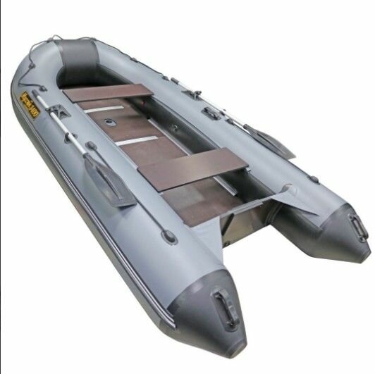 Лодка ПВХ под мотор надувная для рыбалки Муссон 3200 СК (слань + киль) с жёстким полом и килем, серо-черная