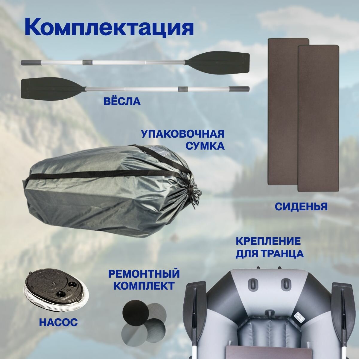 Лодка ПВХ под мотор Муссон R-260 НД надувная для рыбалки, двухместная гребная, серо-черная интересное: