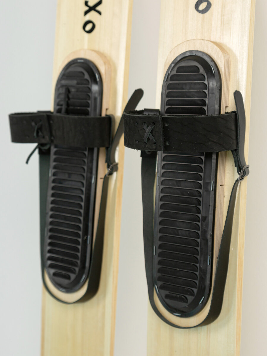 Лыжи охотничьи дерево-пластик Охотник 120 см с креплением кожа