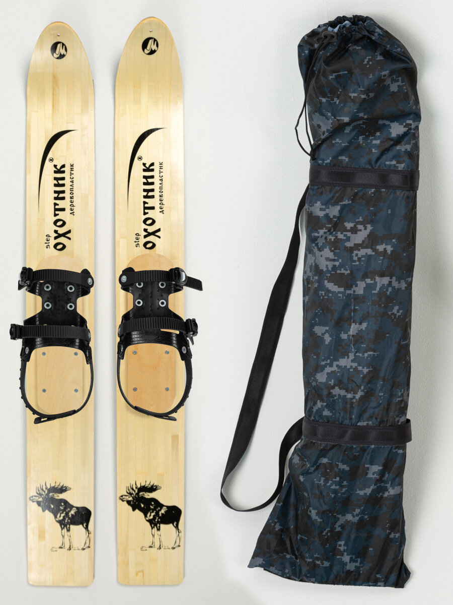 Лыжи охотничьи дерево-пластик Охотник 120 см с креплением брезент