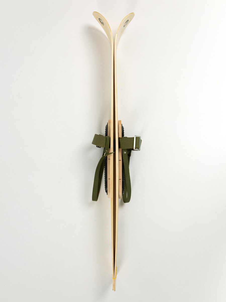 Лыжи охотничьи дерево-пластик Охотник 120 см с креплением брезент