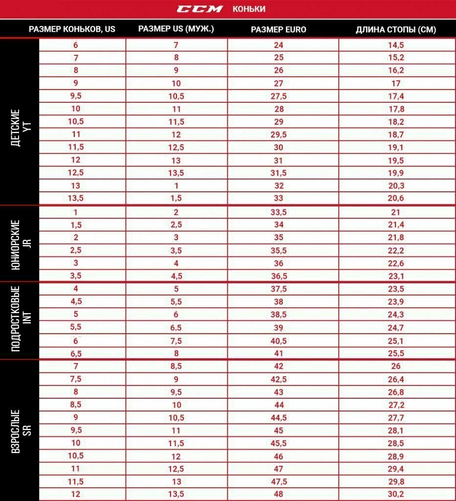 | Вид коньков | хоккейные / взрослые (SR) |