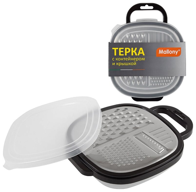 Терка с контейнером и крышкой, GR-228B, нерж сталь/пластик, черная 965017 Mallony