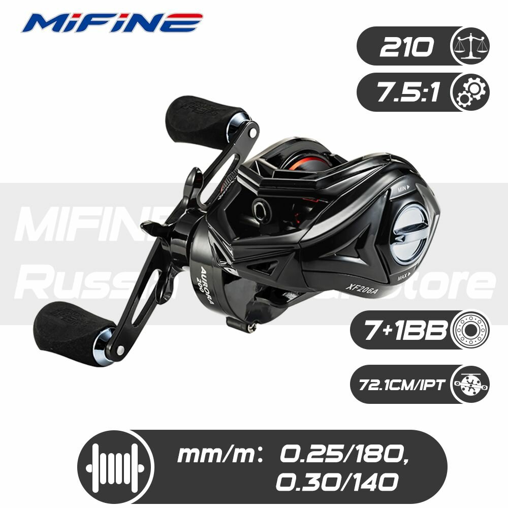 Катушка мультипликаторная MIFINE AURORA XF206A 7+1подшипник (7.5:1), под правую руку