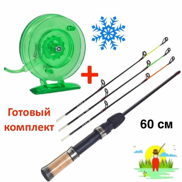 Комплект удочка зимняя CEiMAR Feeder 60см + катушка BLD60 красная / Фидер для зимней рыбалки, Катушка проводочная инерционная