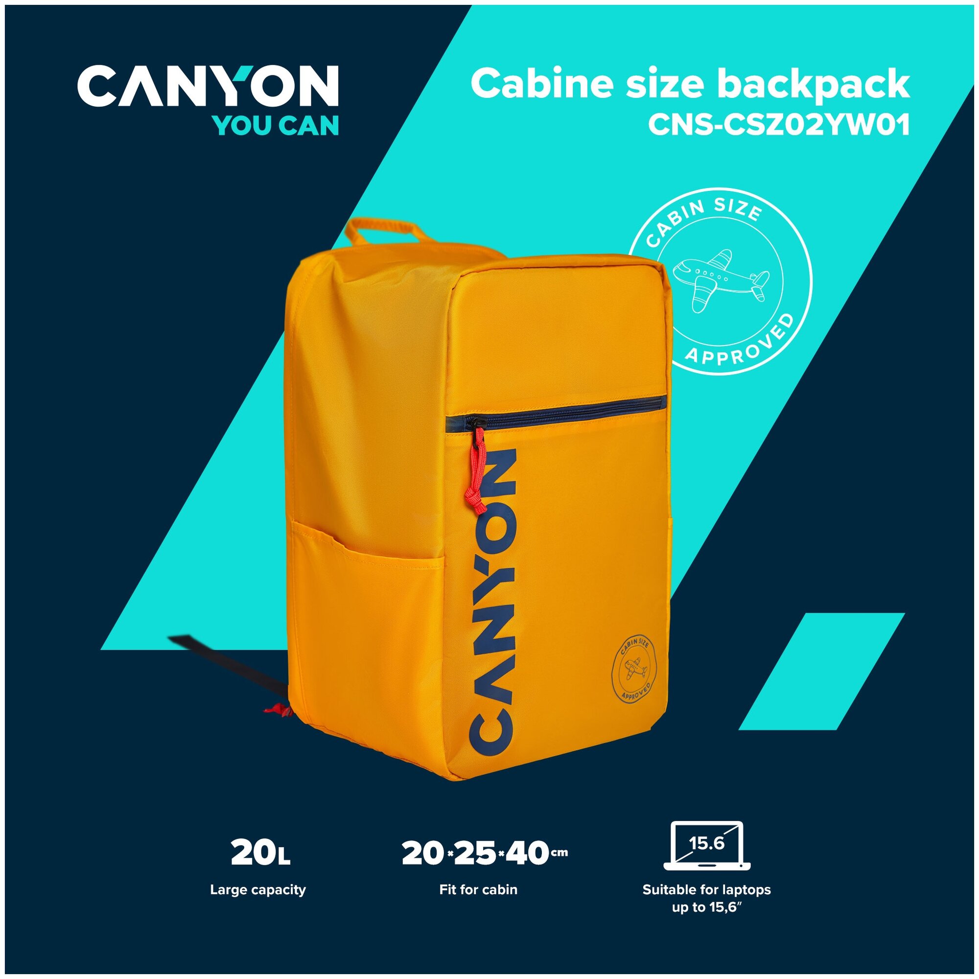 Купить Рюкзак Canyon cabin size backpack for 15.6" laptop ,polyester ,yellow CNS-CSZ02YW01