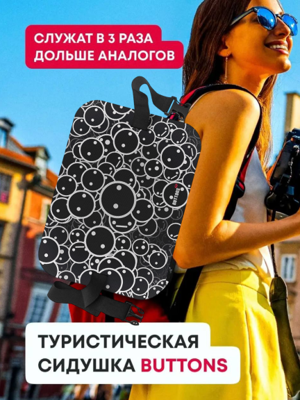 Сиденье туристическое / Туристическая сидушка с рисунком Buttons, коврик каремат походный интересное: