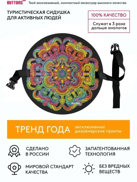 Ниже Вы можете прочитать отзывы на Сидушка-коврик туристическая круглая для активного отдыха с рисунком - "Buttons", ознакомится с подробными характеристиками, посмотреть интересные обзоры и фотографии на Сидушка-коврик туристическая круглая для активного отдыха с рисунком - "Buttons".
