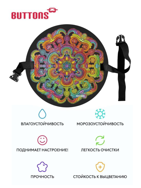 Сидушка-коврик туристическая круглая для активного отдыха с рисунком - "Buttons" интересное: