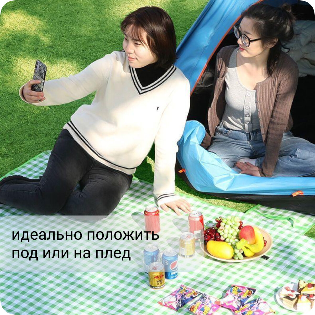 Пляжный коврик - сумка складной зеленый для пляжа пикника кемпинга рыбалки похода интересное: