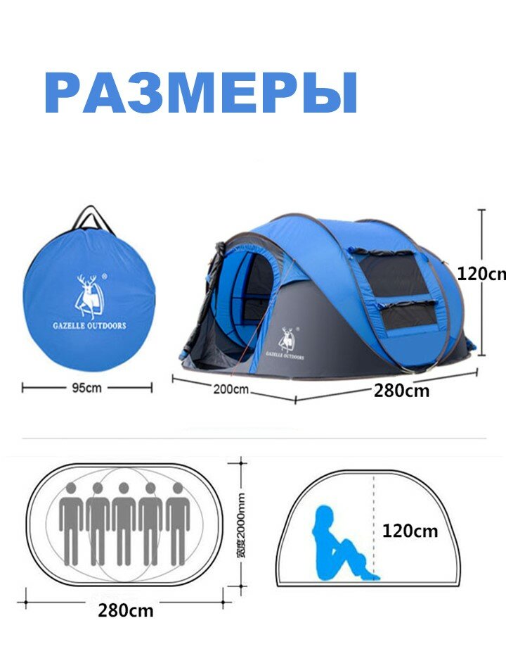 Палатка-автомат туристическая трех местная 280*205*120см синяя интересное: