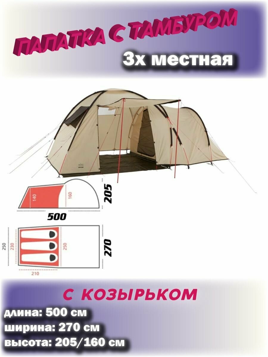 Палатка A3-29 туристическая с тамбуром/трехместная интересное:
