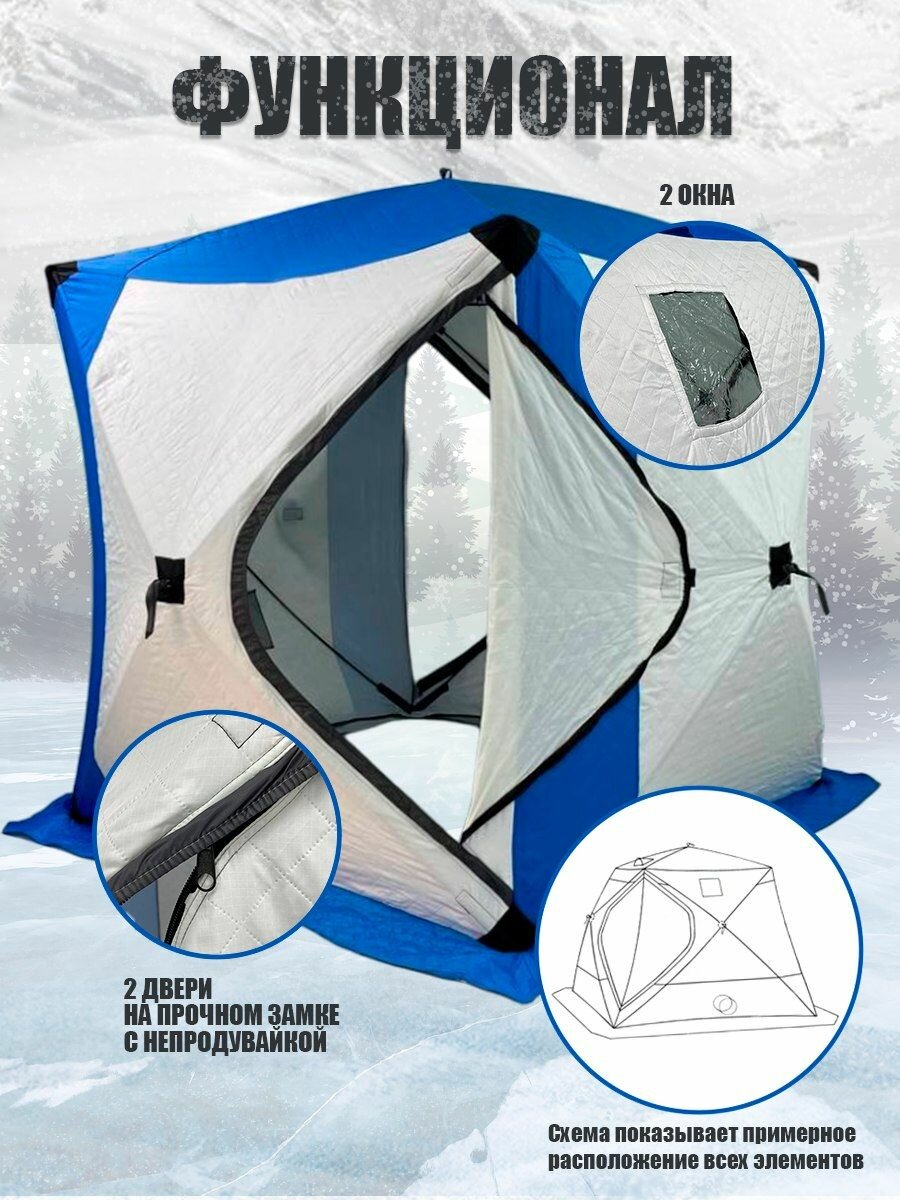 Купить Зимняя палатка куб 3х местная утепленная. Палатка для зимней рыбалки 1,8 х 1,8 х 2 м