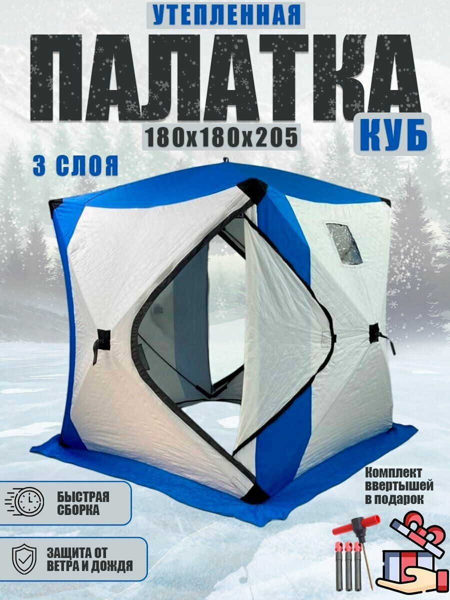 Зимняя палатка куб 3х местная утепленная. Палатка для зимней рыбалки 1,8 х 1,8 х 2 м интересное: