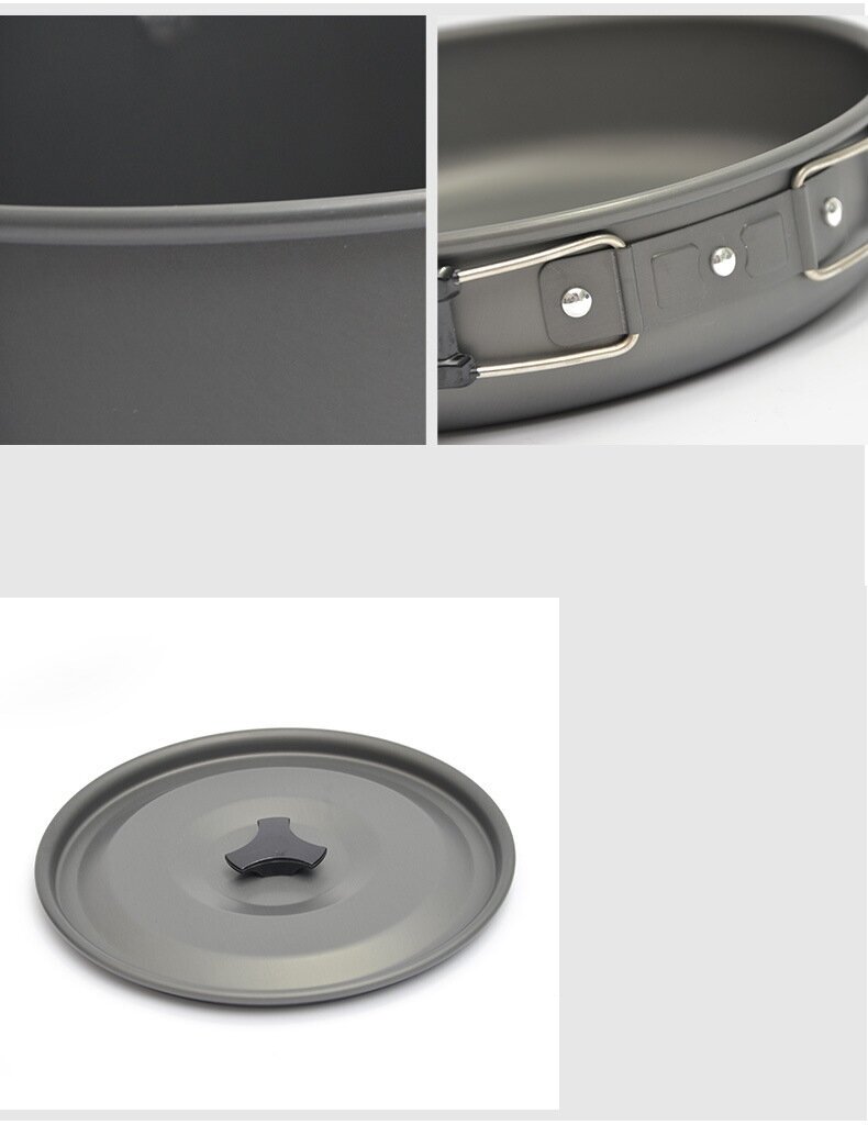 | Дополнительная информация | анодированный алюминиевый сплав; подробная комплектация: Сковорода со складной ручкой (1шт): объем 900 мл; глубина 40 мм, диаметр 200 мм. - Большой котелок со складной ручкой (1шт): объем 2700 мл, диаметр 195 мм; - Средний котелок со складной ручкой (1шт): 1500 мл, диаметр 170 мм. - Чайник (1шт) - диаметр 140 мм, объем 720 мл.. Так же в комплекте: - 1 складная ложка-половник; - 1 деревянная лопатки; - 5 пластиковых мисок-соусников; - 2 пластиковые тарелки; - 1 глубокая пластиковая тарелка; - 1 губка из натурального материала; - сетчатый чехол.; особенности: складная конструкция |