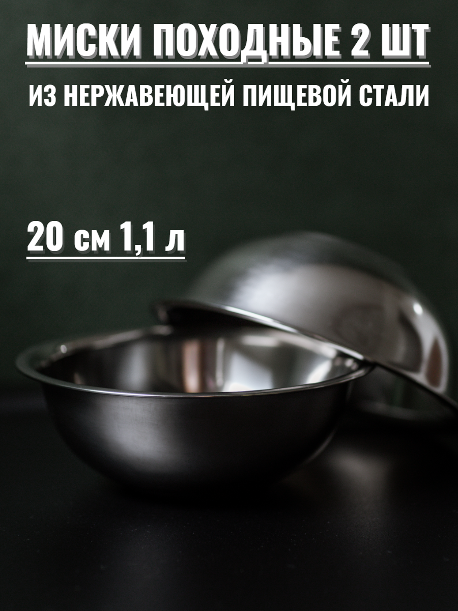 Миски походные 20 см, объём 1,1 л, набор 2 шт, нержавеющая сталь