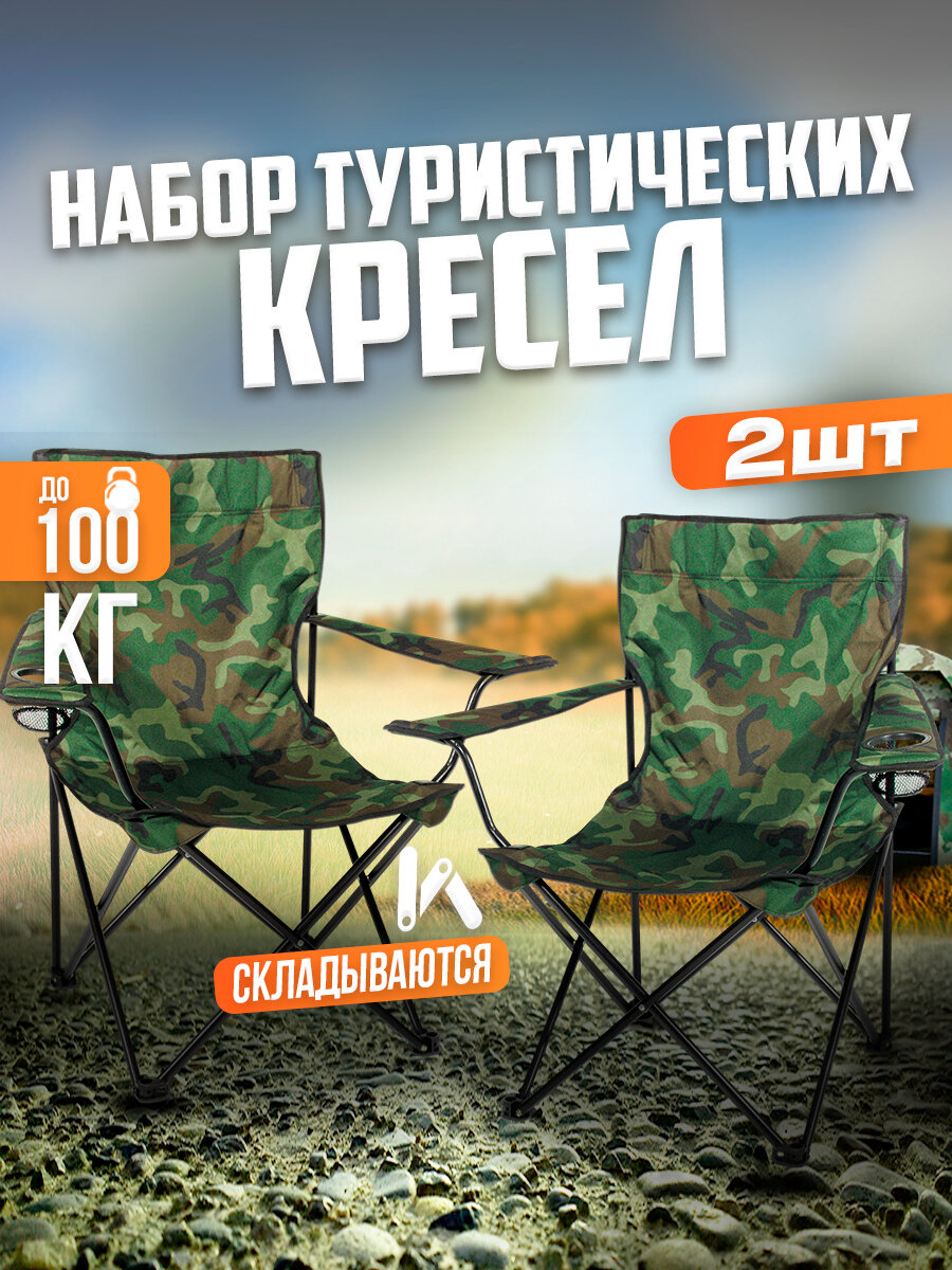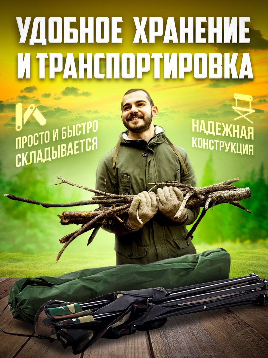 Кресло складное туристическое TERBO с подстаканником , вес до 100 кг, цвет милитари камуфляж