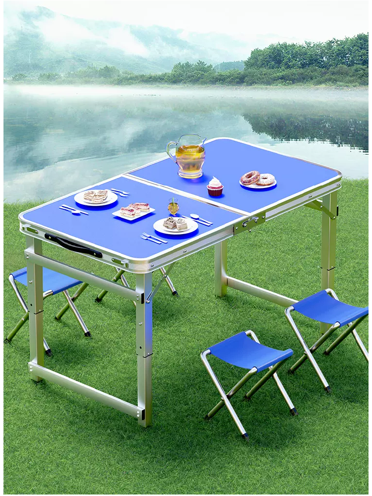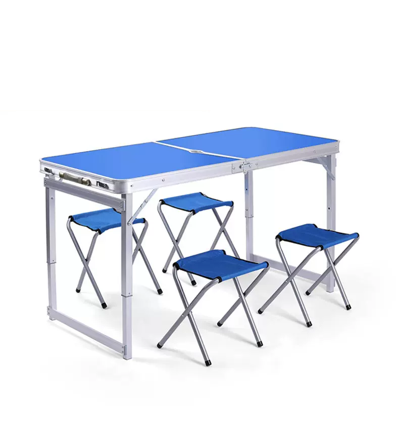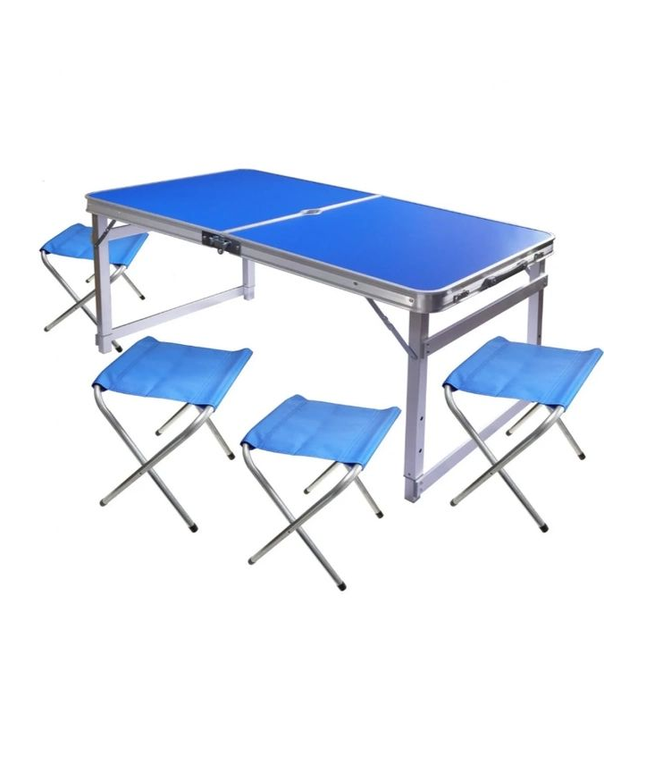 Купить Складной туристический стол из металла, длина 120 см.х 60 см. 4 стула в комплекте 27х23х35 см.