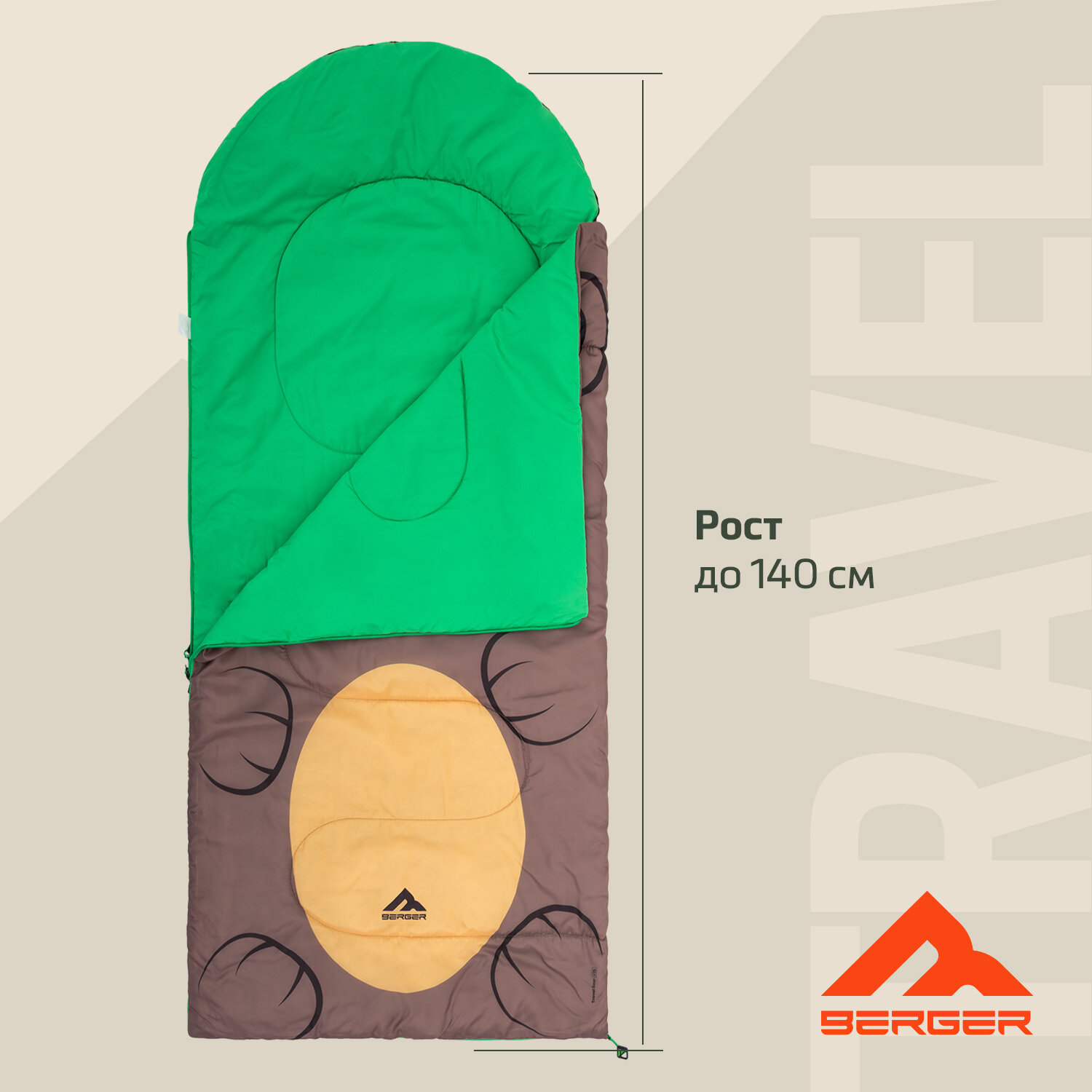 Спальный мешок Berger Travel Bear +15 BTB24SB-01, коричневый, детский интересное: