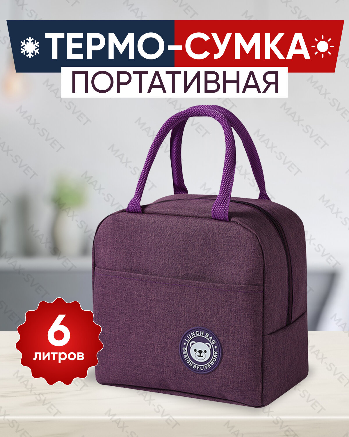 Купить Сумка холодильник S-MAX объемом 6 литров, крепкими водонепроницаемыми швами для сохранения продуктов в тепле или холоде, пурпурная