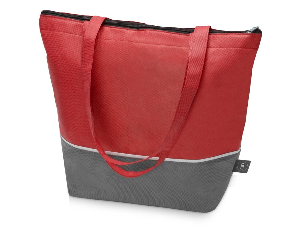 Купить Сумка-холодильник Reviver с длинными ручками из нетканого переработанного материала RPET, красный/серый
