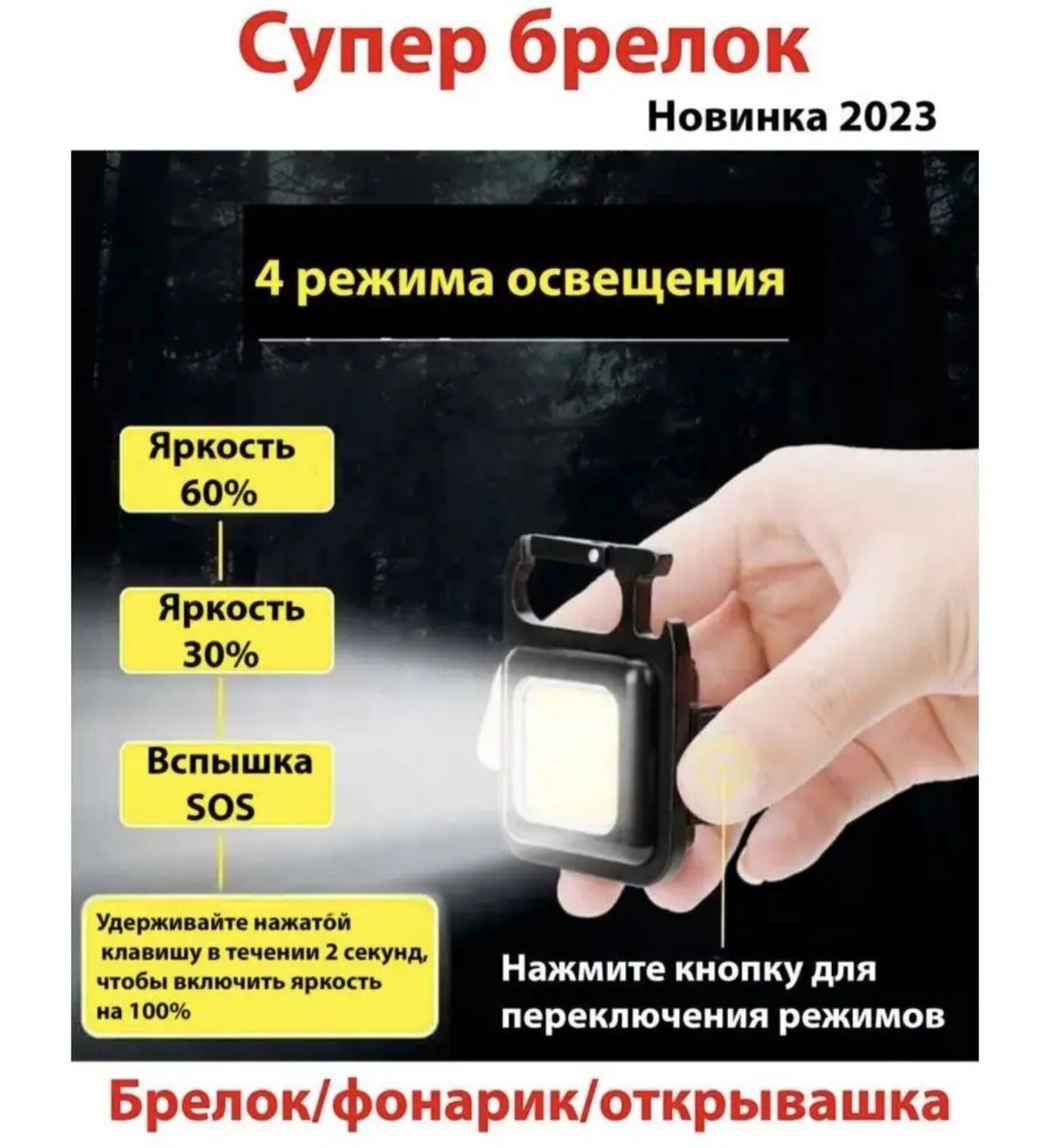 | Дополнительная информация | (в наборе 2шт.)Если нажать и удерживать до 5-7 секунд кнопку включения, то включиться усиленный режим фонаря |