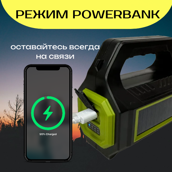 Фонарь светодиодный, аккумуляторный, тактический, фонарик для кемпинга, ручной туристический прожектор с powerbank интересное: