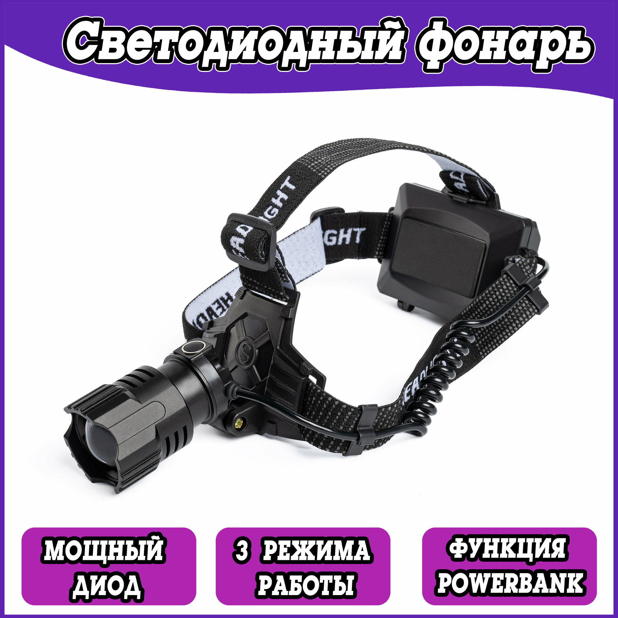 Мощный налобный светодиодный аккумуляторный фонарь (3 x АКБ 5200mAh, зарядка от USB) интересное: