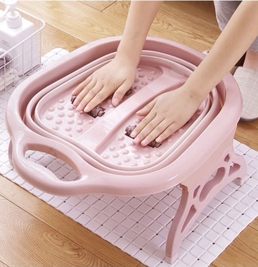 Ванночка для ног складная светло-розовая/ массажная ванночка для ног/ ванночка для ног с массажными роликами интересное: