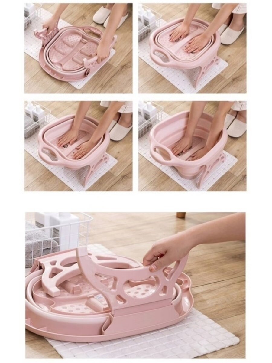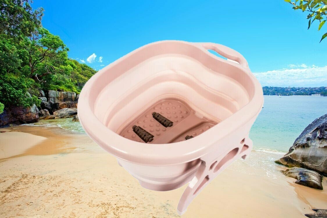 Купить Ванночка для ног складная светло-розовая/ массажная ванночка для ног/ ванночка для ног с массажными роликами