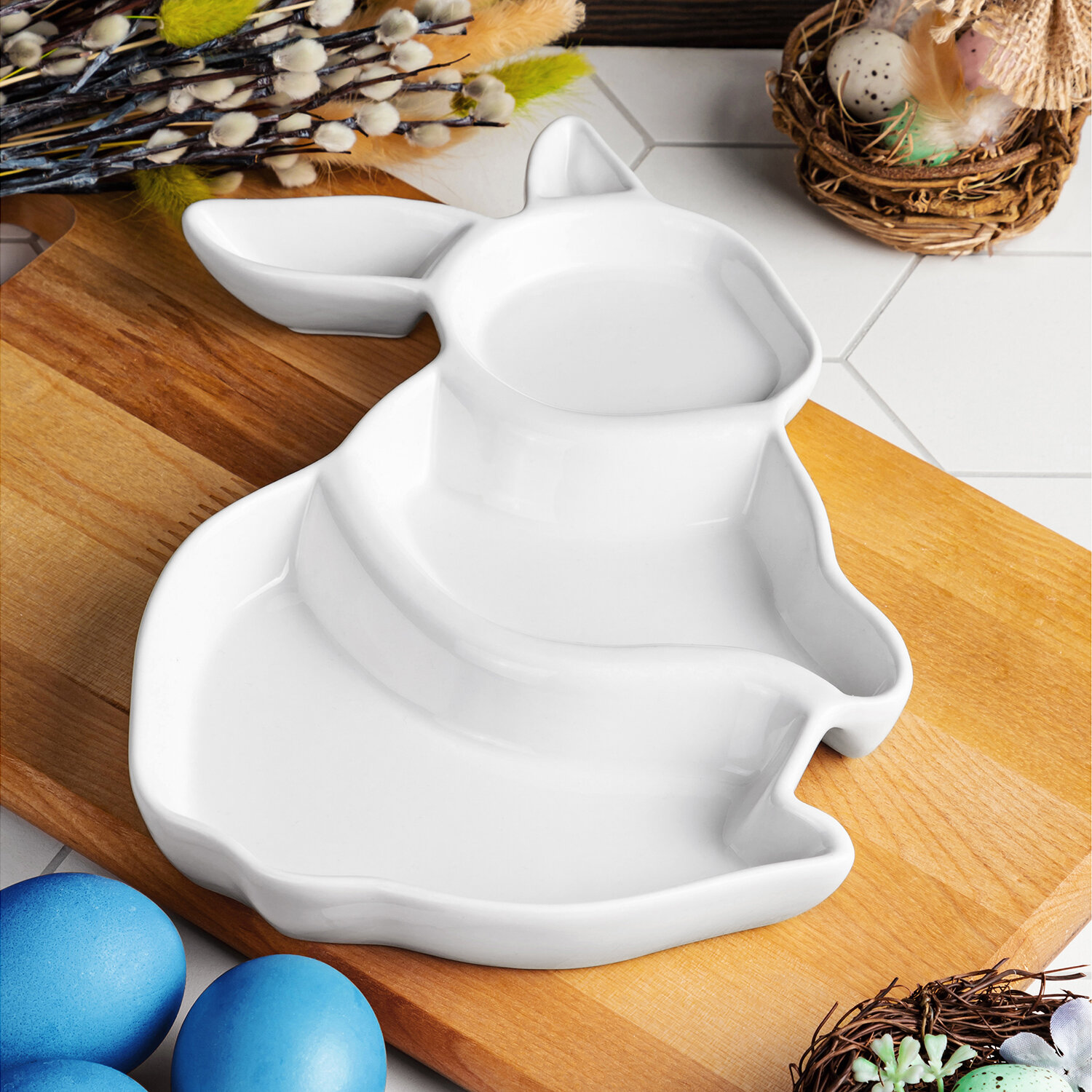 Блюдо - менажница фарфоровая 26х17х3 см Пасха Elan Gallery Заяц 3 секции и 2 секции-ушки