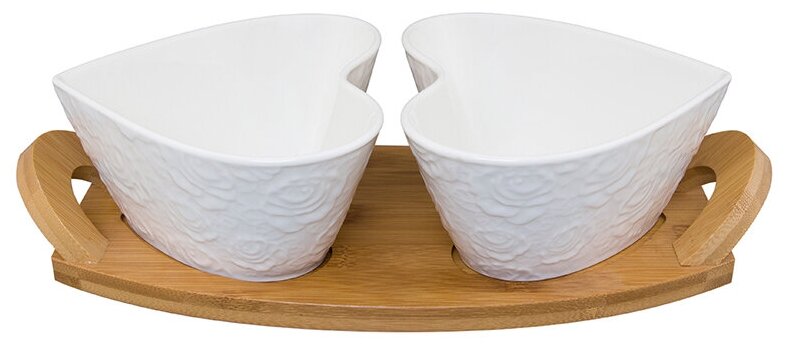 Менажница 32х16х8 см 580 мл Elan Gallery Сердце Белые розы на деревянной подставке интересное: