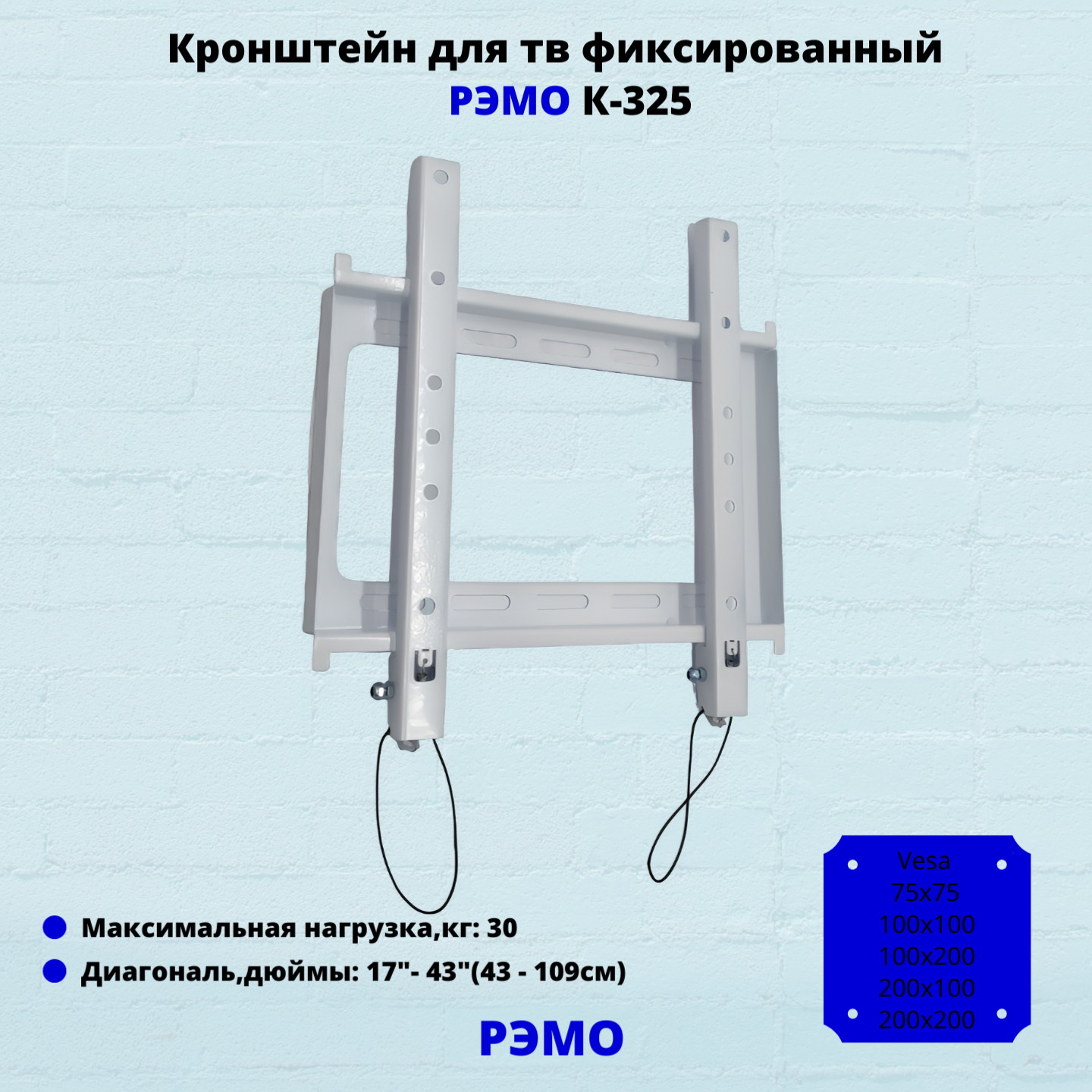 Кронштейн для телевизора на стену фиксированный с диагональю 17"-43" Рэмо К-325,белый интересное: