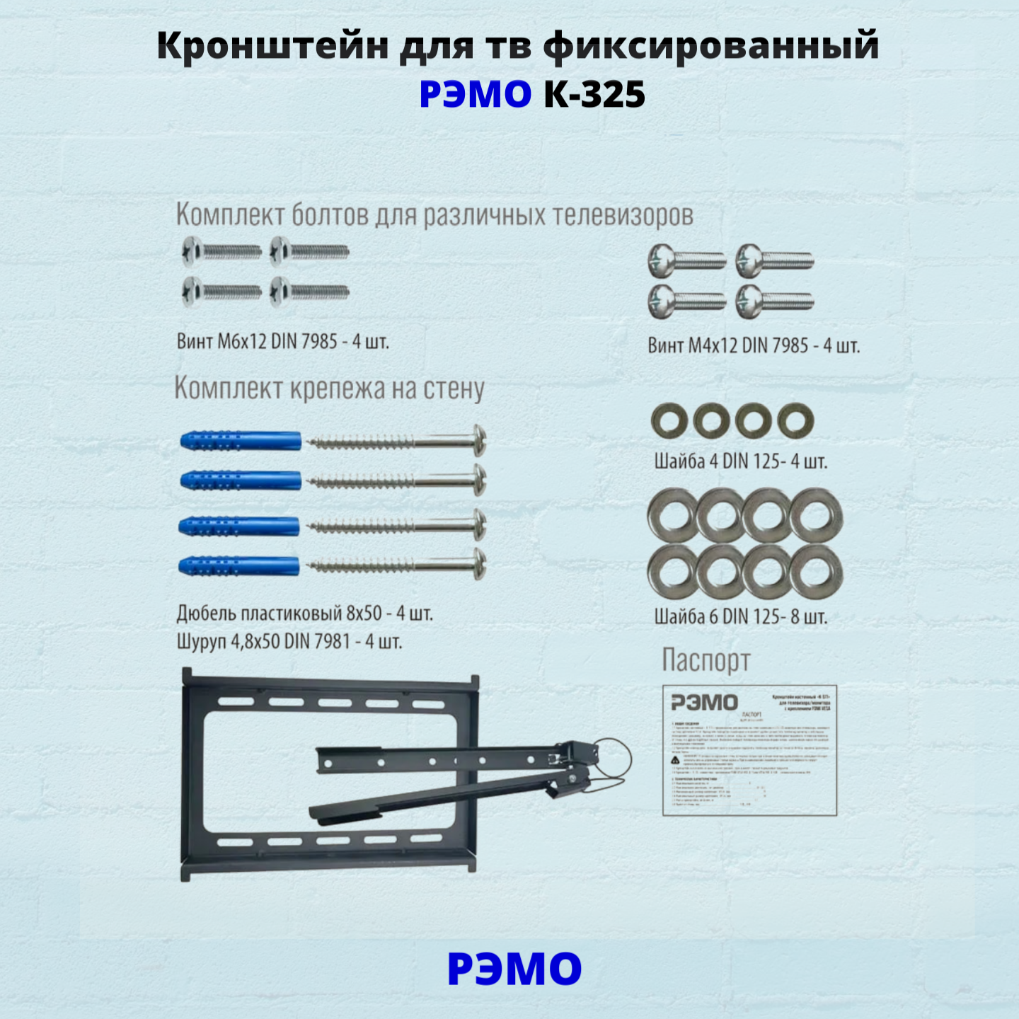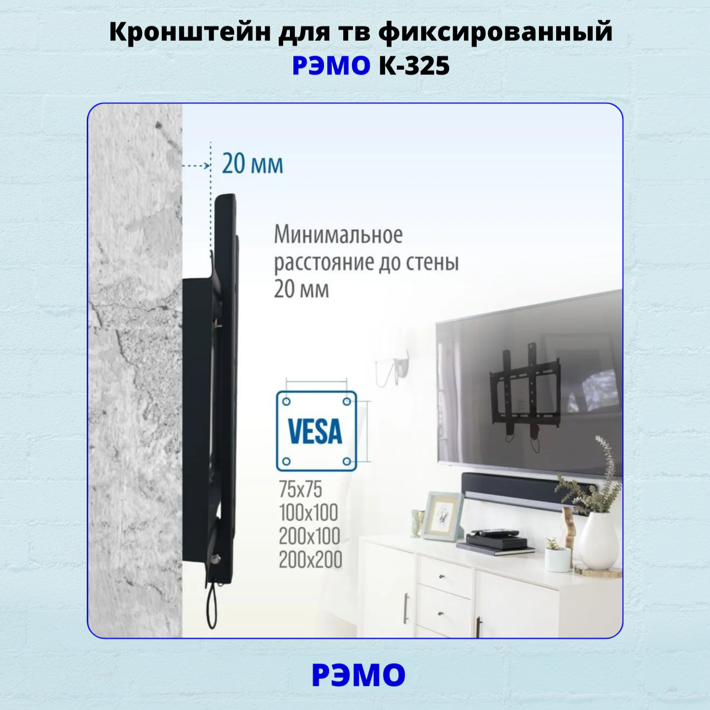Кронштейн для телевизора на стену фиксированный с диагональю 17"-43" Рэмо К-325,черный интересное: