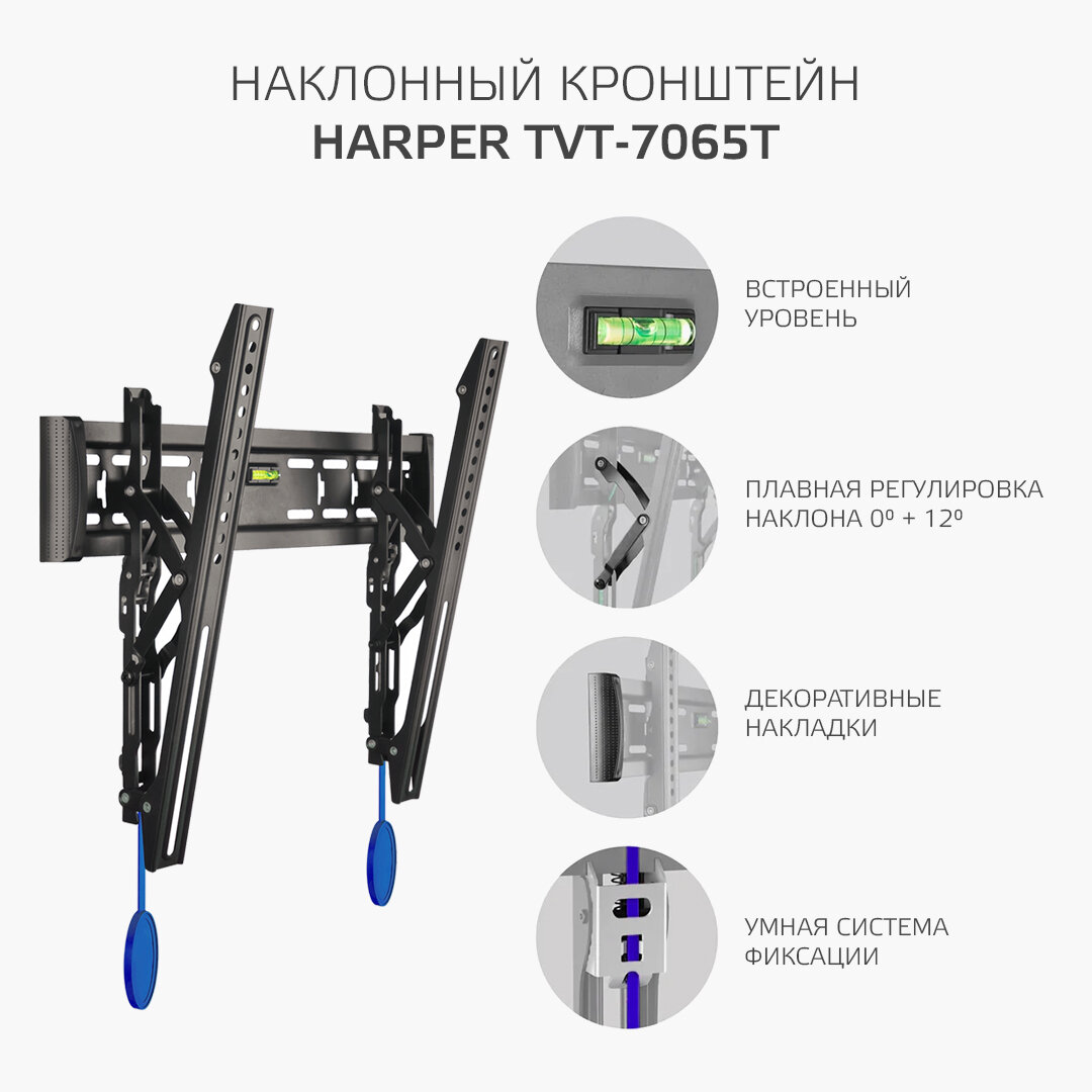 Наклонный кронштейн для телевизоров HARPER TVT-7065T, черный интересное: