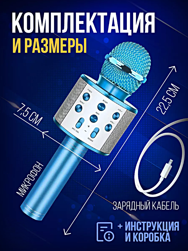 СохранитьМикрофон караоке беспроводной, Микрофон WS Bluetooth со встроенной колонкой для караоке, вечеринок, Голубой интересное: