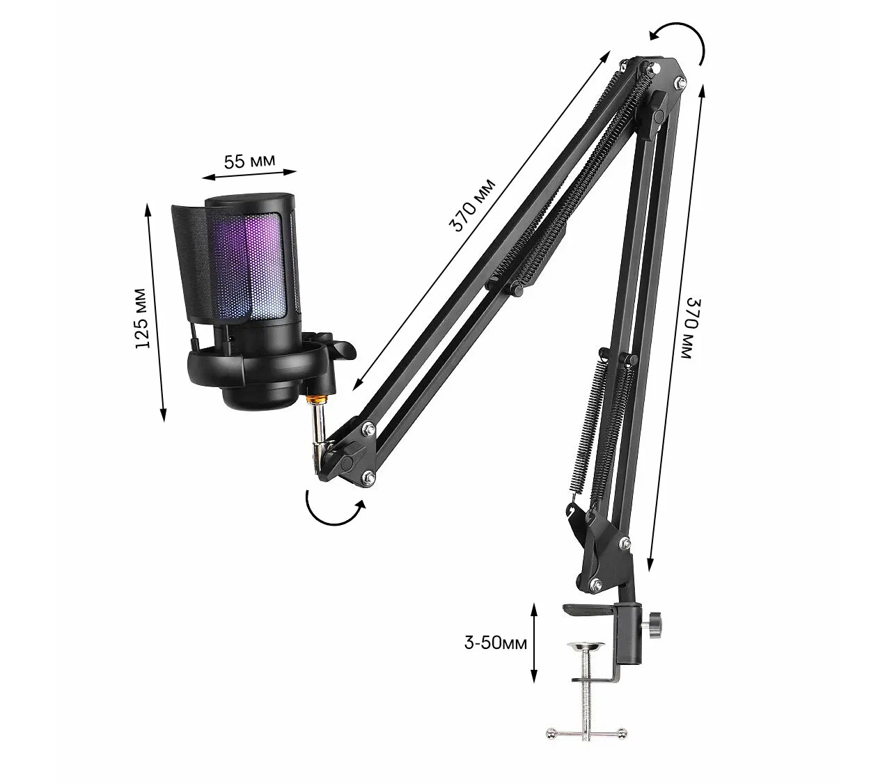 Микрофон для компьютера игровой с поп-фильтром, конденсаторный, на стойке, с RGB подсветкой, микрофон игровой, для стриминга, USB микрофон интересное: