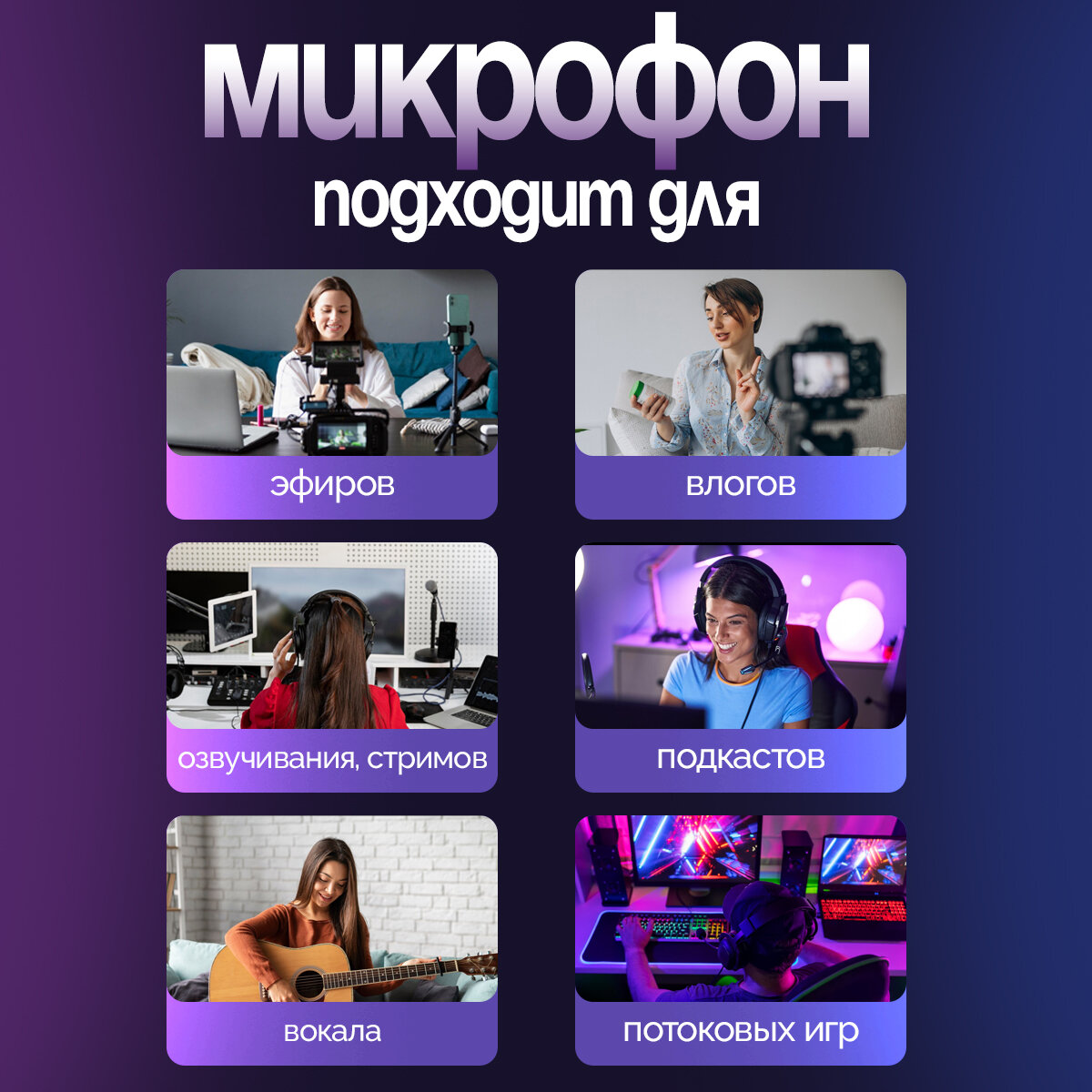| Назначение | для вокала / для интервью / для компьютера / для конференций / для подкастов/радио/телевидения / для стриминга / студийный / универсальный |