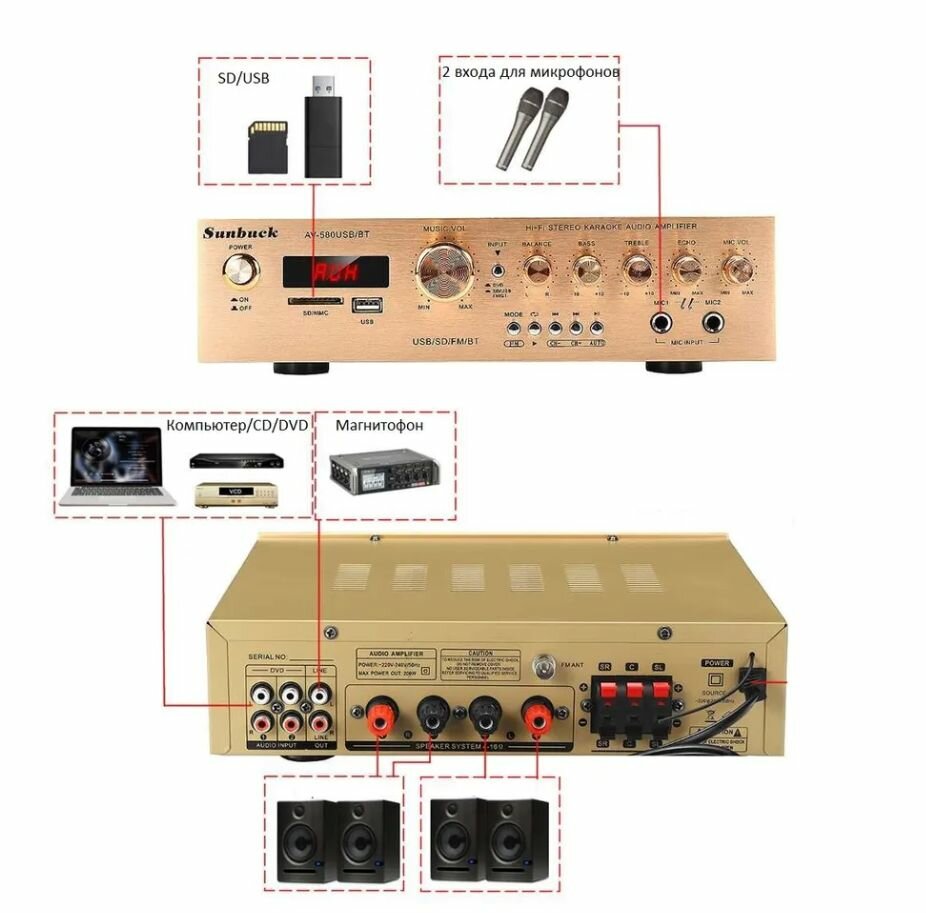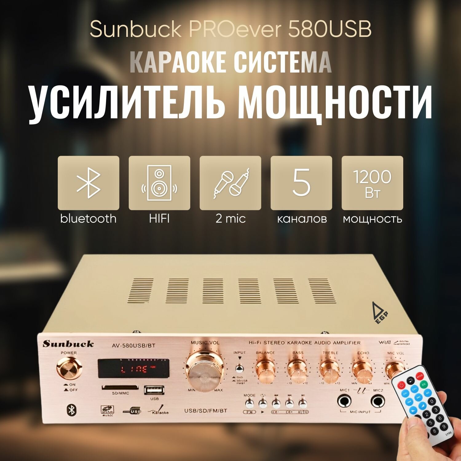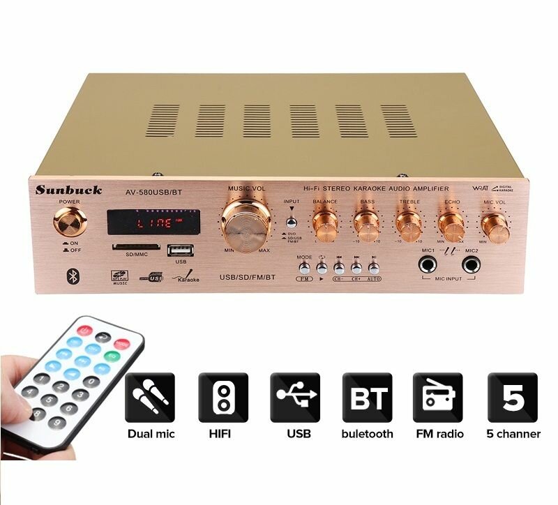 5-ти канальный HI-FI усилитель звука Sunbuck PROever 580USB 1200 Вт интересное: