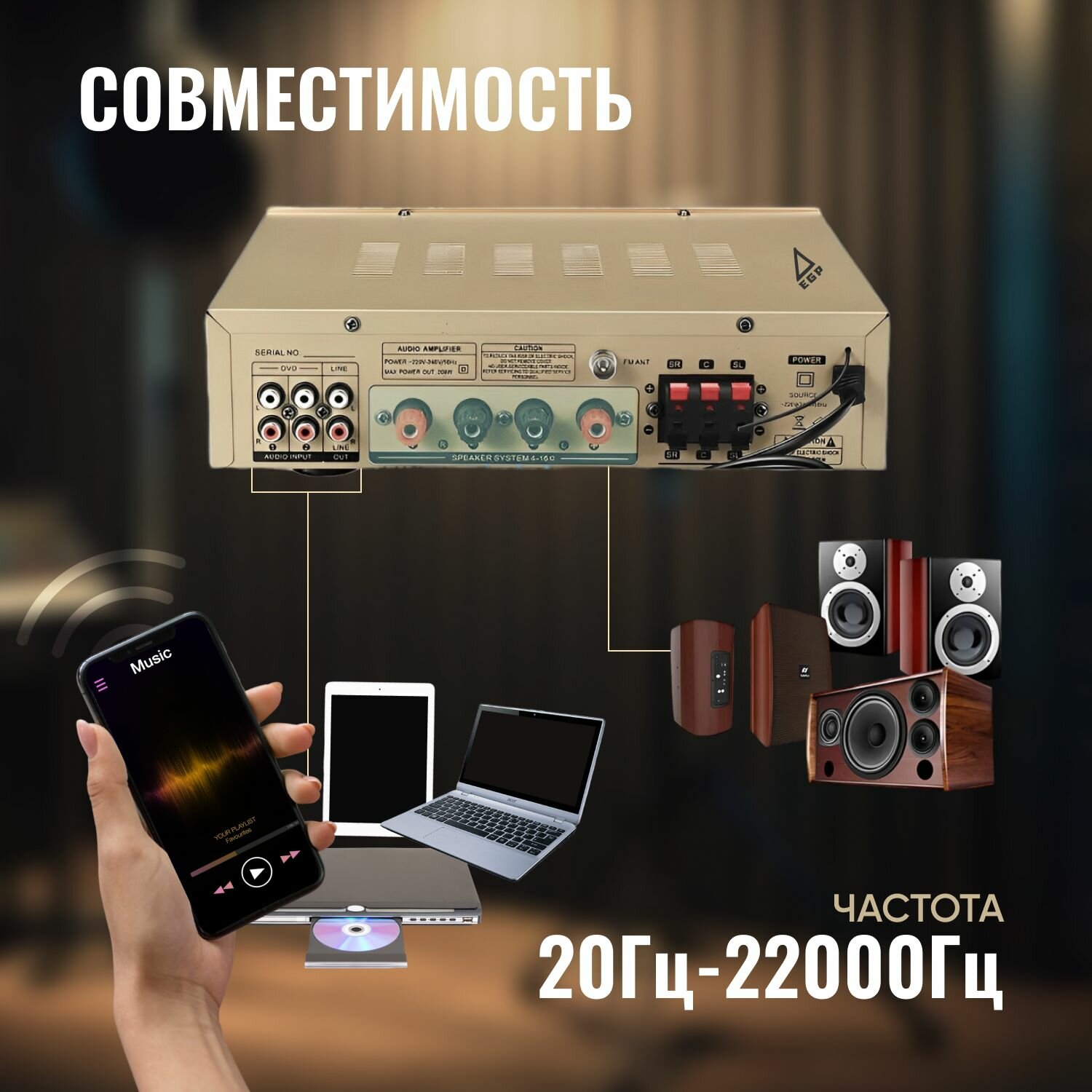 | Минимальная воспроизводимая частота | 20 Гц |