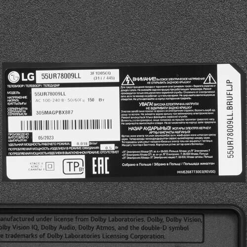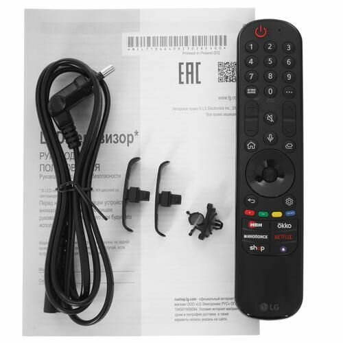 | Дополнительная информация | пульт Magic Remote, режим FILMMAKER, режим сбережения энергии, субтитры, телегид, технология AI Home, технология AI Recommendation, функция подключение USB-камеры, функция семейные настройки |
