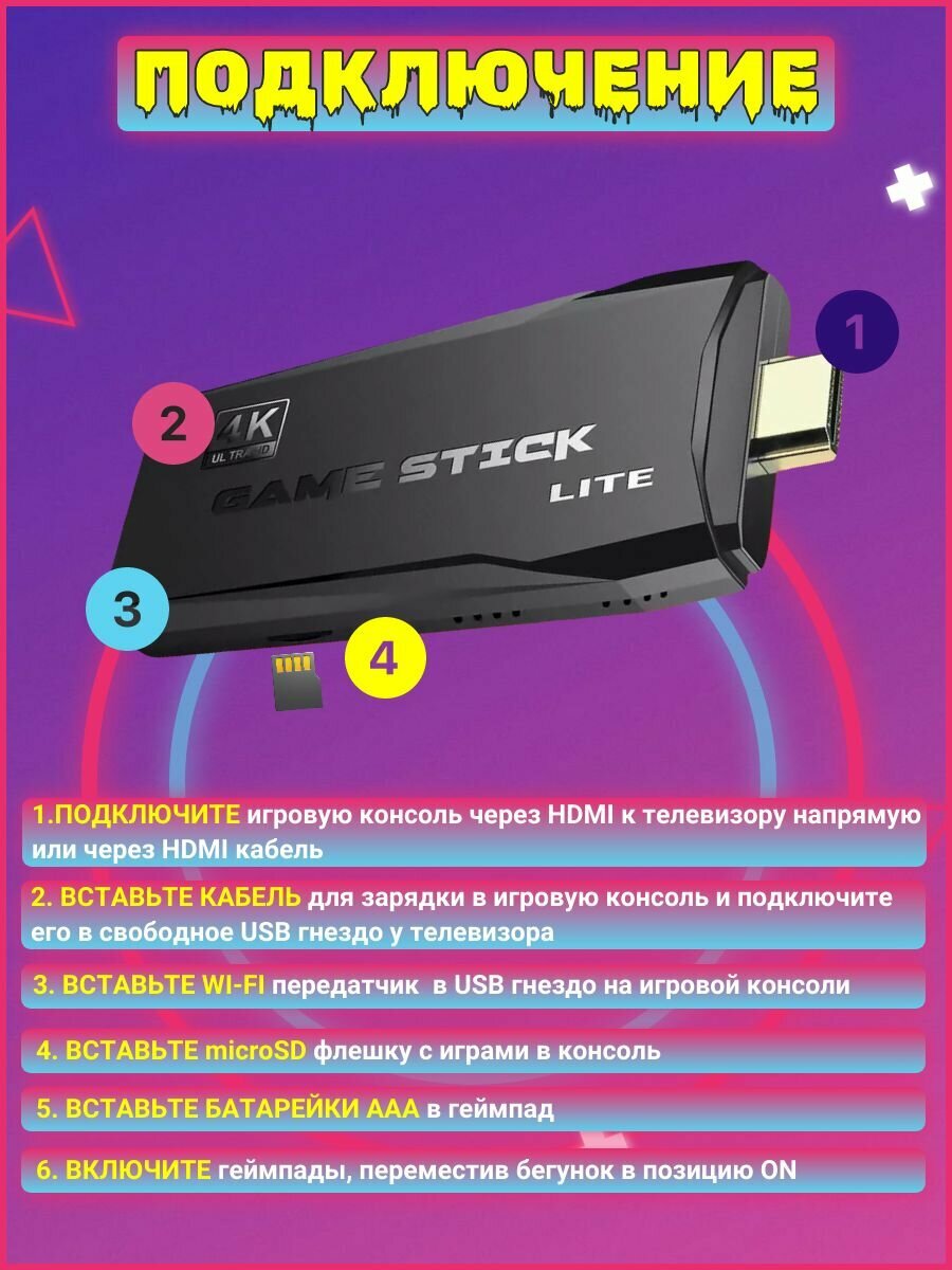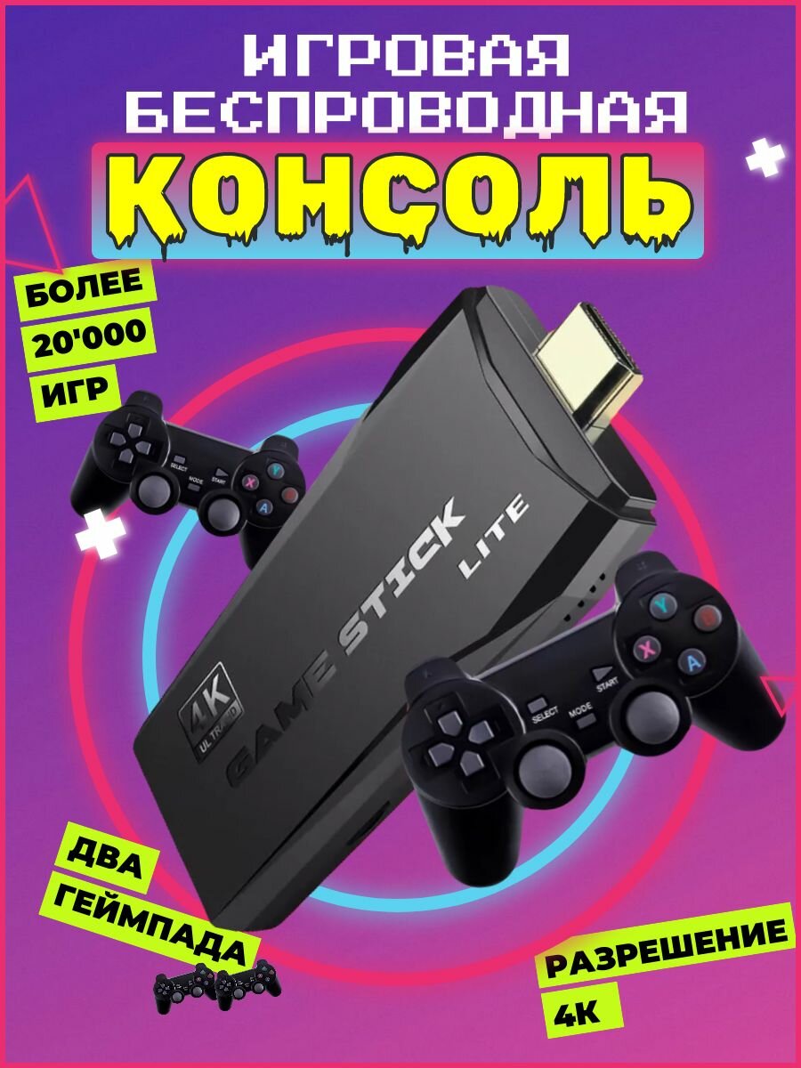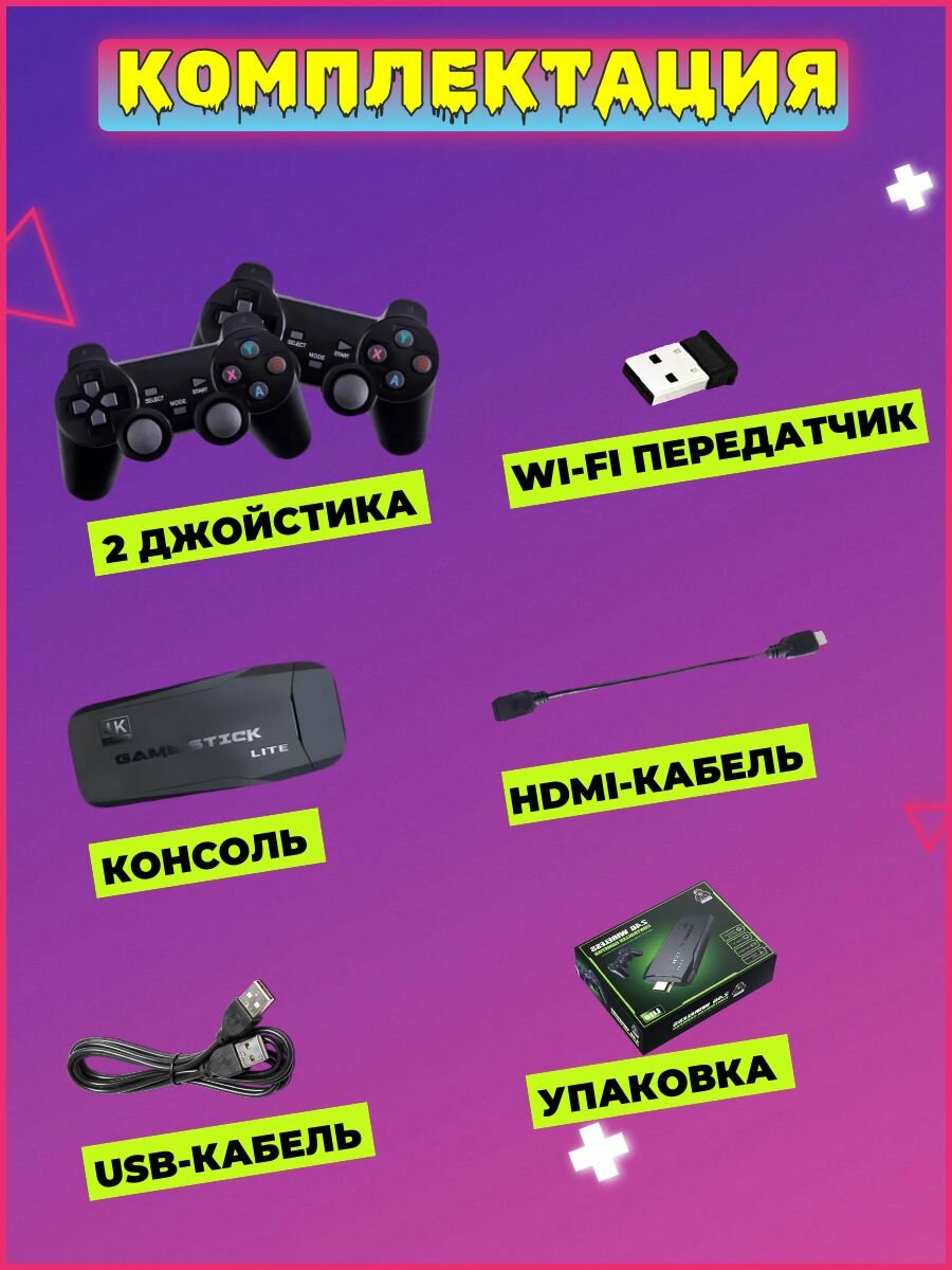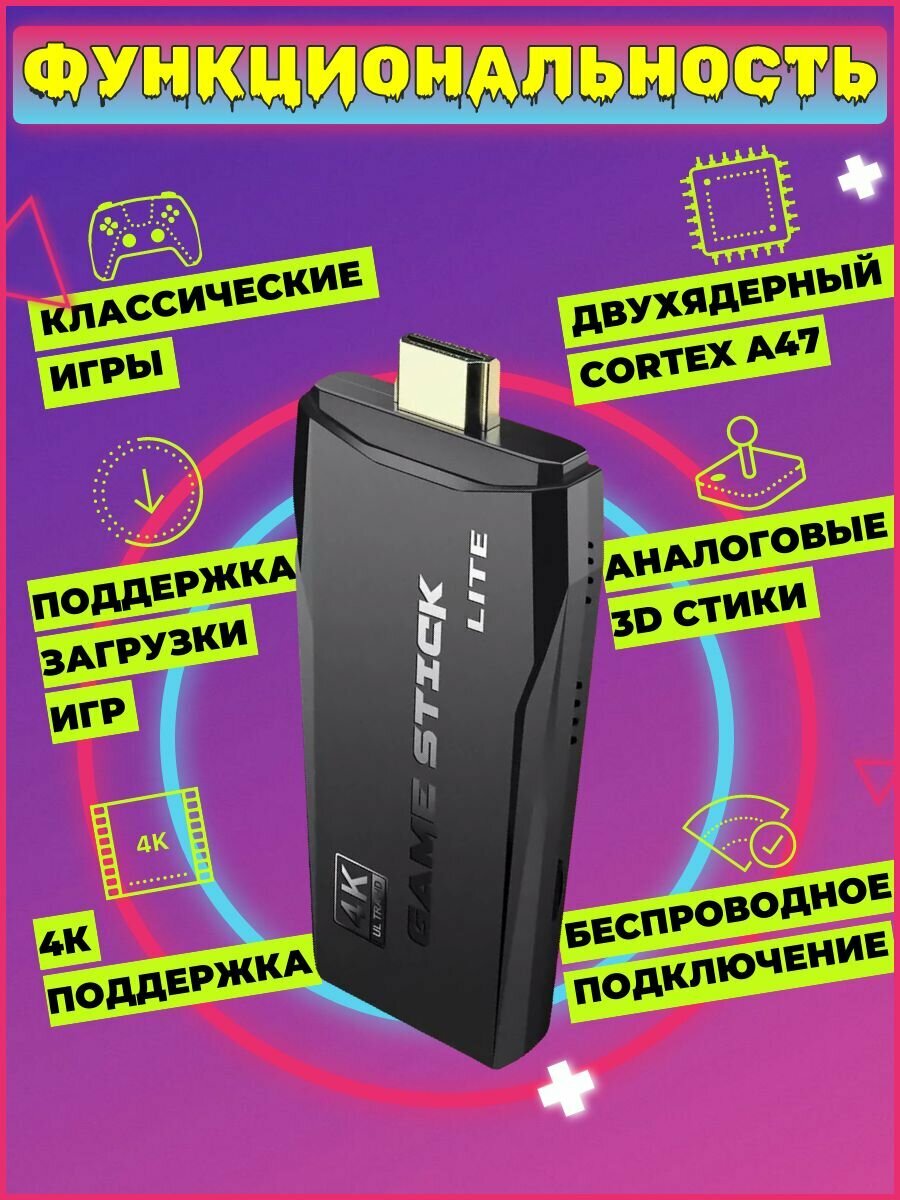 Игровая приставка, консоль Game Stick Lite 64Gb, 3555 игр, 4K, 2,4 ГГц, 8 бит, 16 бит, 32 бит