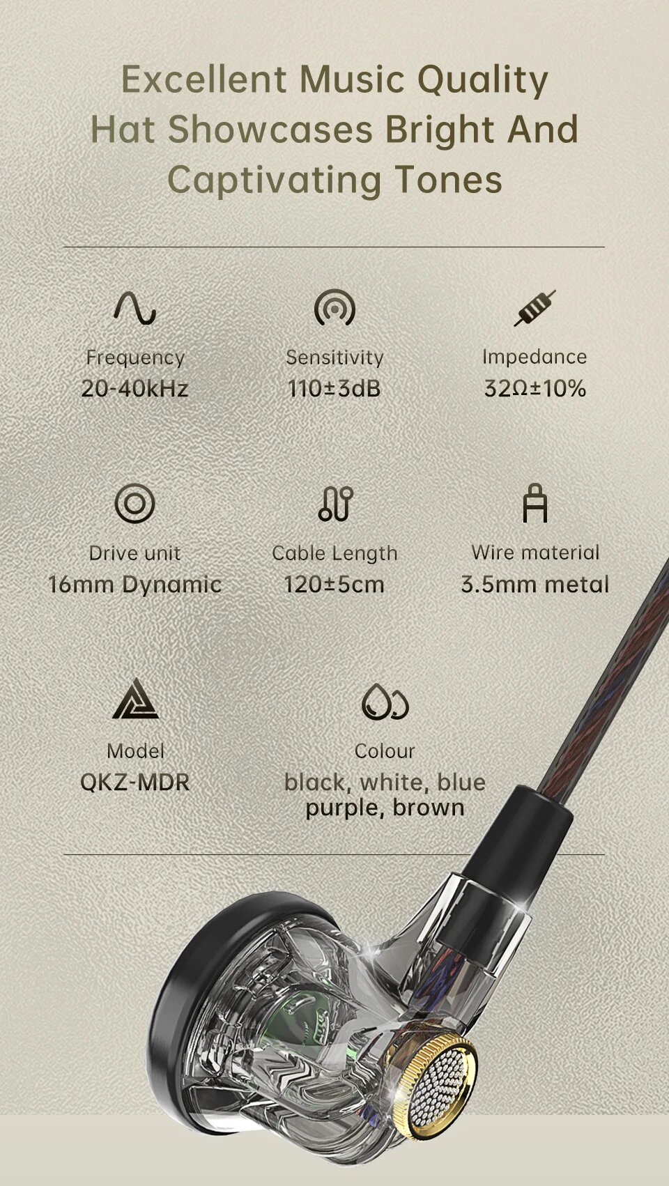 Наушники QKZ MDR - динамические 1DD Hi-Fi - 20-40КГц - 16Ом - 110дБ - с микрофоном - черные интересное: