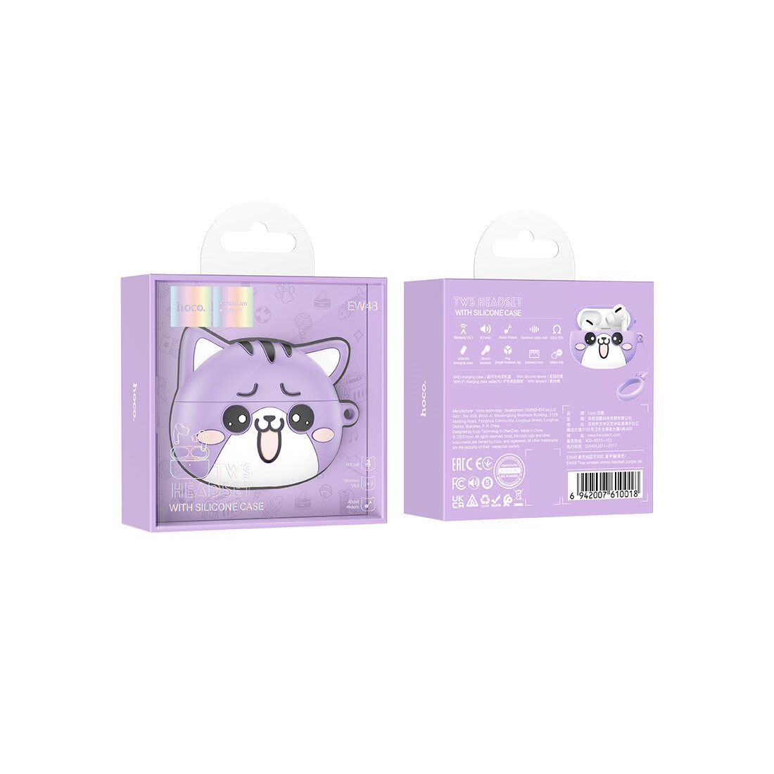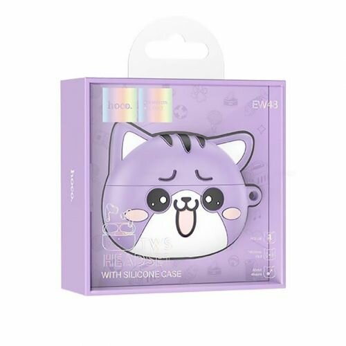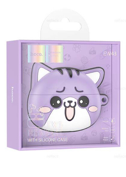 Купить Беспроводные TWS-наушники в кейсе "Котик" Hoco EW48, фиолетовый