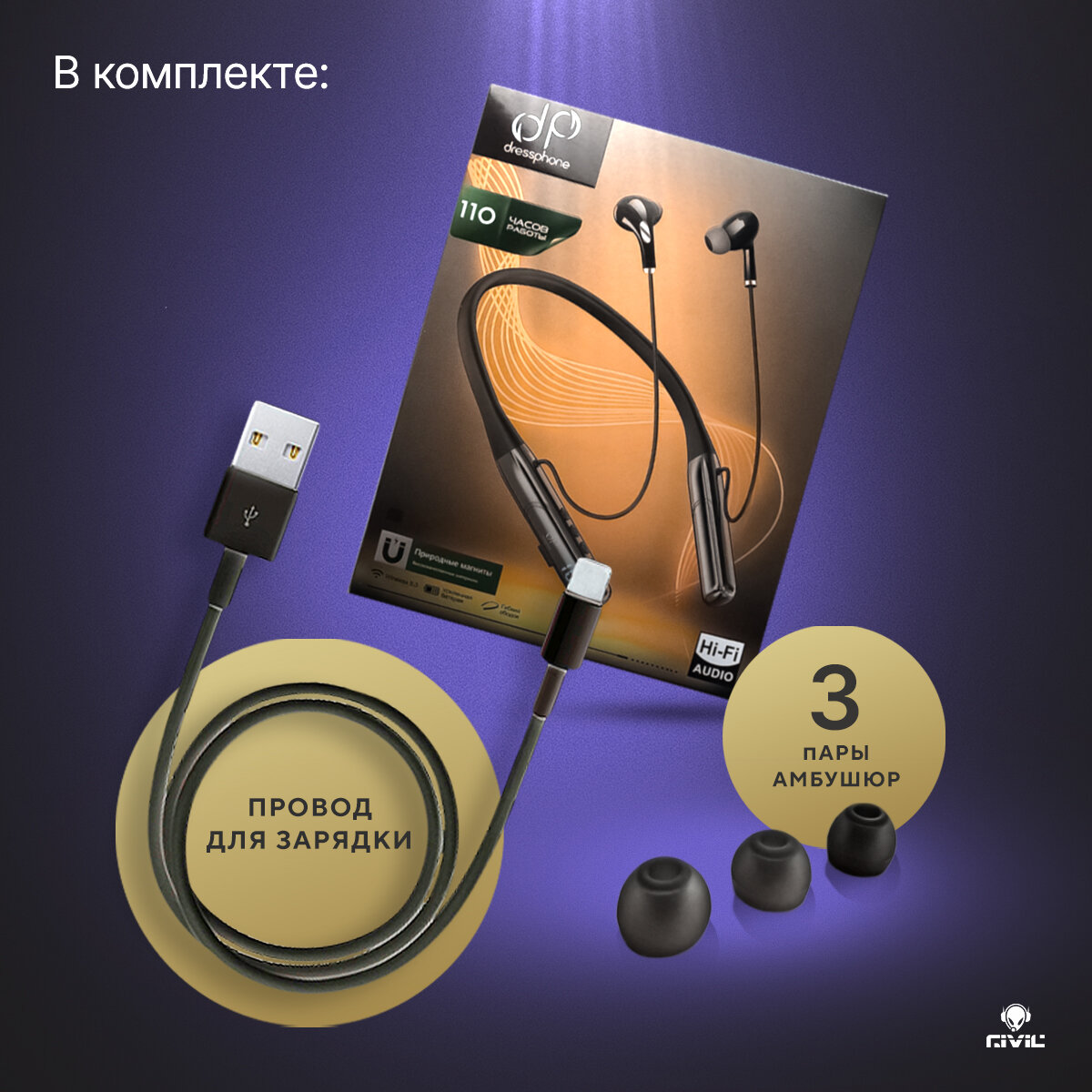 Наушники беспроводные спортивные bluetooth Dressphone DP-06 интересное: