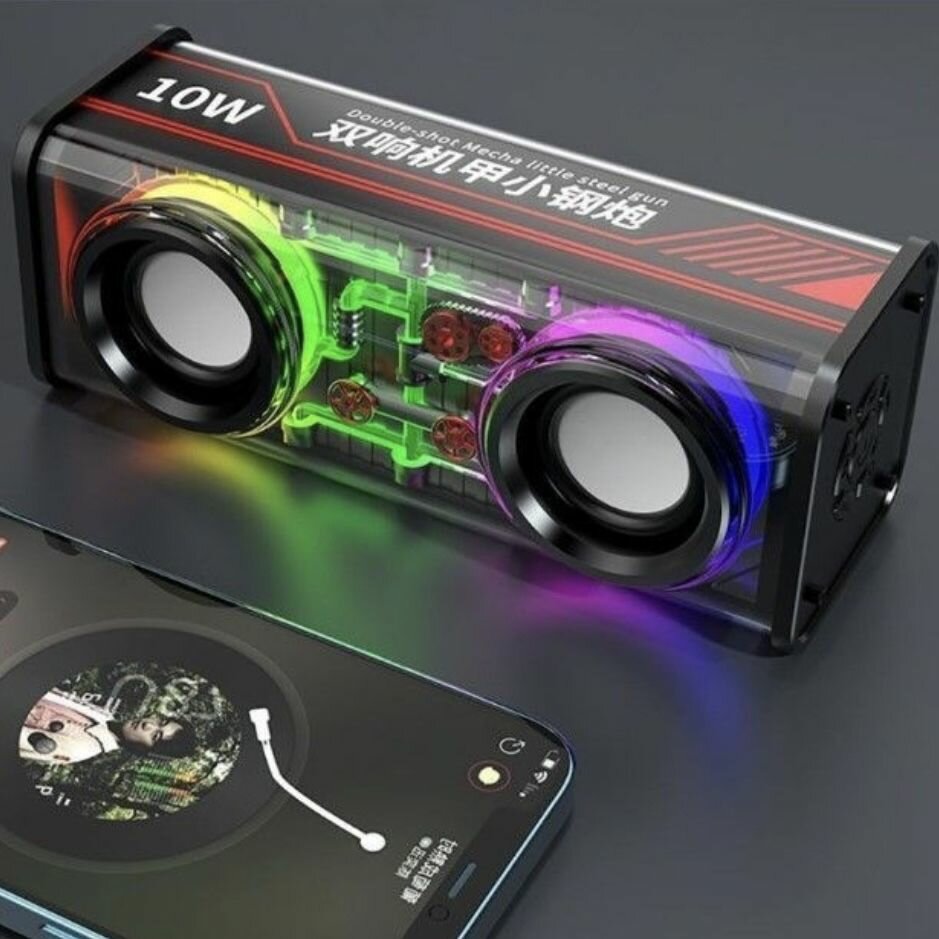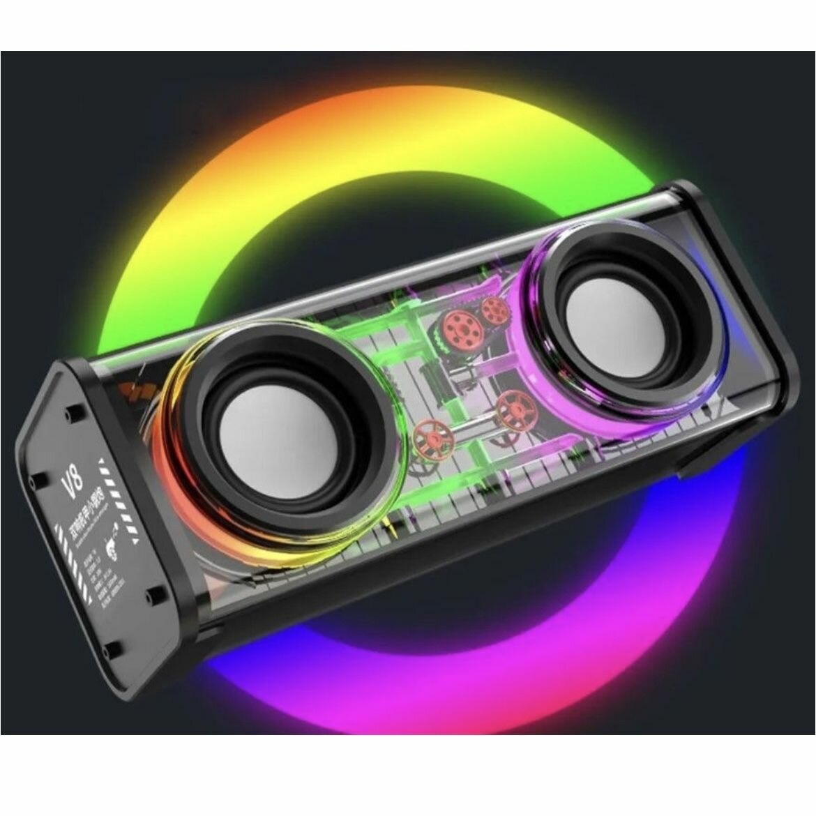 Bluetooth сабвуфер с объемным стерео звуком и светодиодной подсветкой V8. черный. интересное: