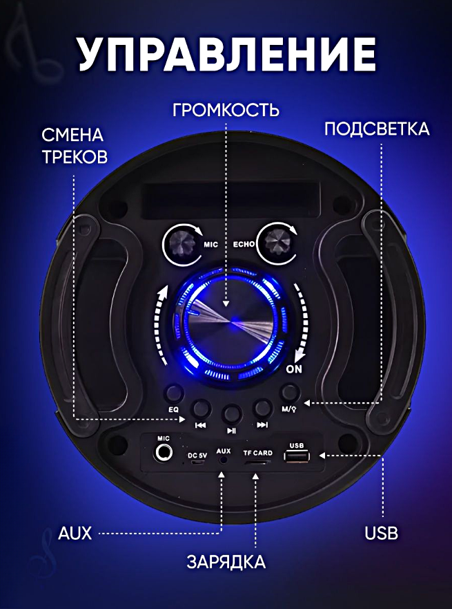 | Дополнительная информация | Комплектация проводной микрофон; пульт ДУ; кабель для зарядки USB - MicroUSB; музыкальная колонка |
