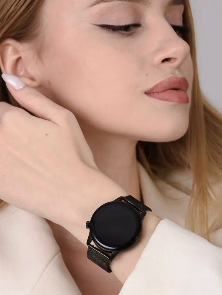 Купить Умные часы женские, умные часы smart watch наручные, круглые, bluetooth, приложение для телефона, черные