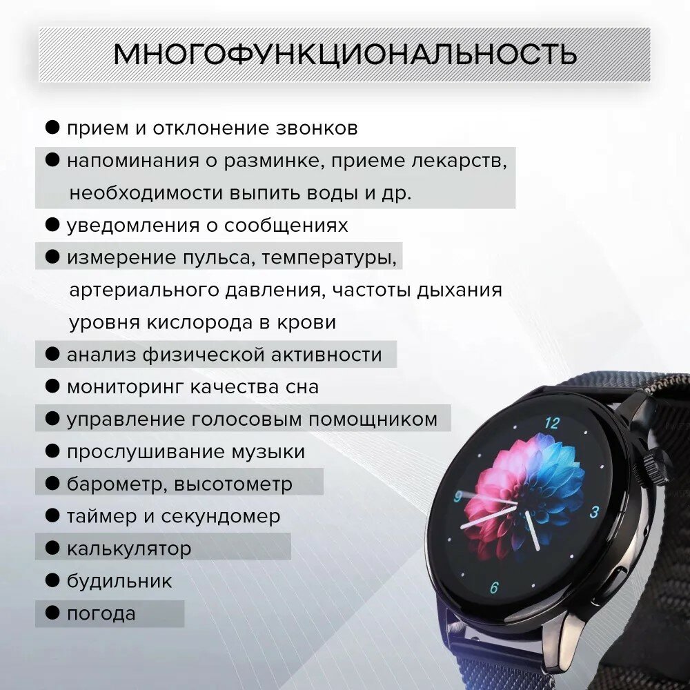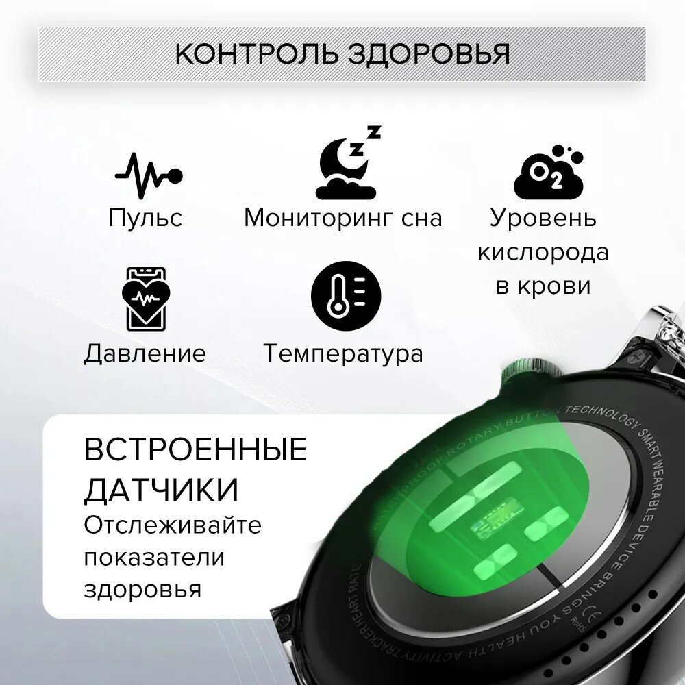 | Мониторинг | калорий, пульса, сна, уровня кислорода в крови, физической активности |