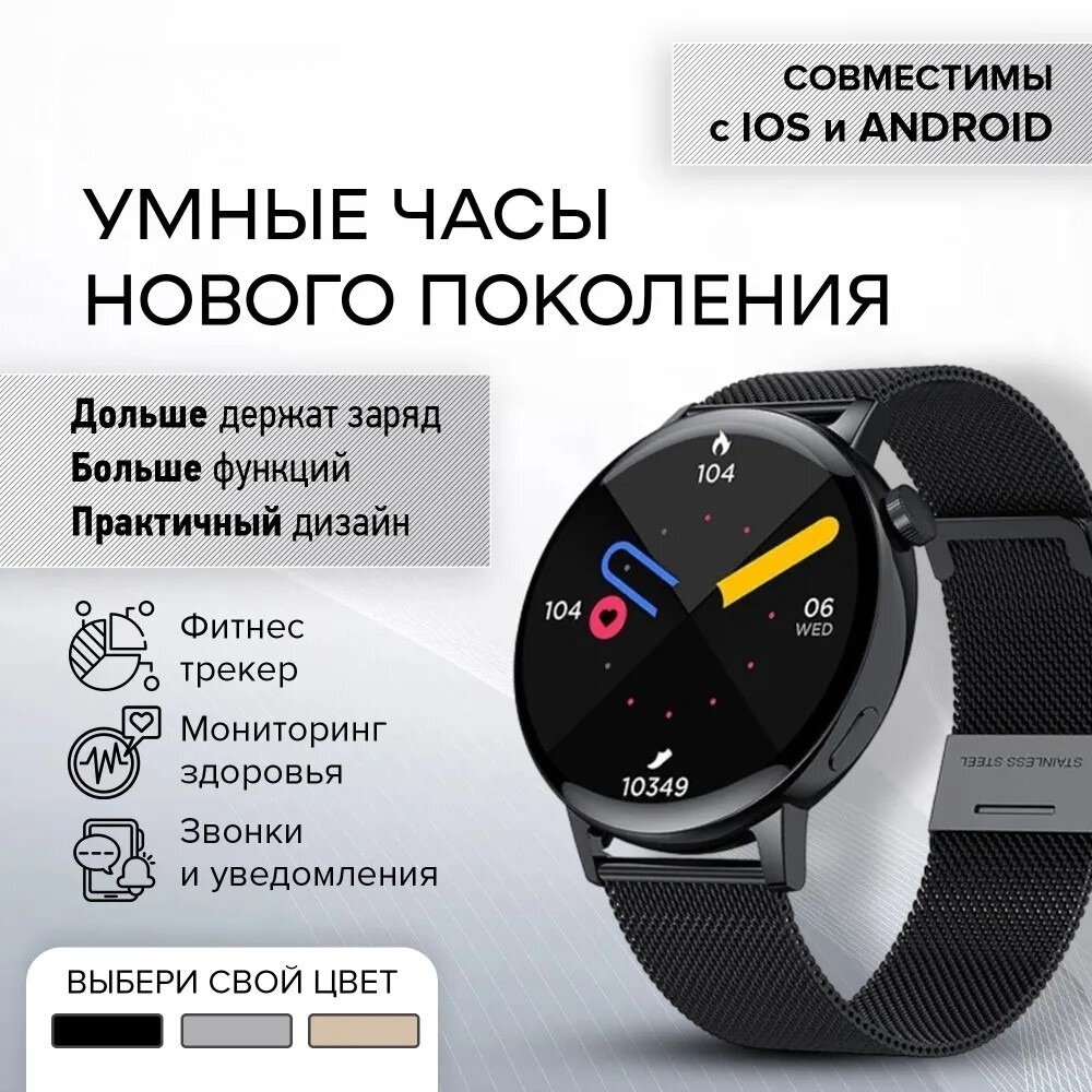 Умные часы женские, умные часы smart watch наручные, круглые, bluetooth, приложение для телефона, черные интересное: